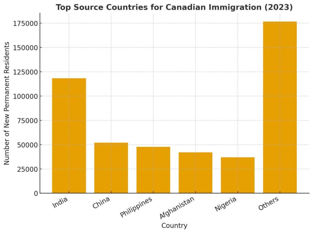 - Top source countries in 2023: India, China, the Philippines, Afghanistan, and Nigeria.